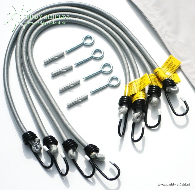 Zubehör Vierecksonnensegel - daurelastische Spanngurte + Montagematerial