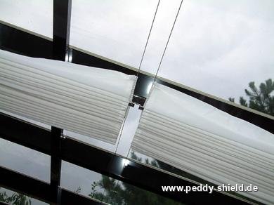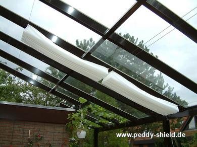 Innenbeschattungfür Glasdächer, Wintergärten und Terrassenüberdachungen Pergola Beschattungmit Seilspanntechnik Sonnensegel geradeMaßanfertigung bis 20 m²