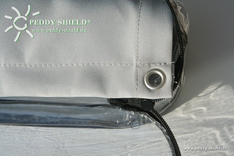 Polyestergewebe mit Teflon beschichtet und deshalb Wasser und Schmutz abweisend.- uni hell silbergrau als neutrale Farbe
