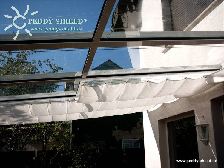 Innenbeschattungfür Glasdächer, Wintergärten und Terrassenüberdachungen Pergola Beschattungmit Seilspanntechnik Sonnensegel geradeMaßanfertigung bis 20 m²
