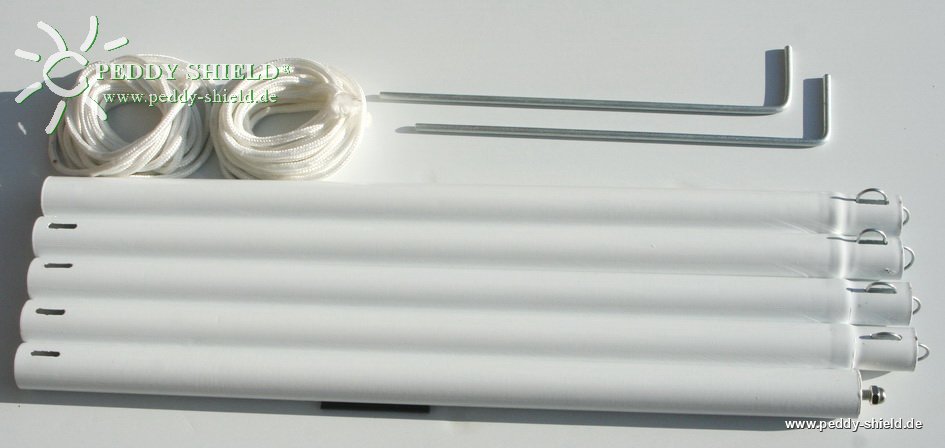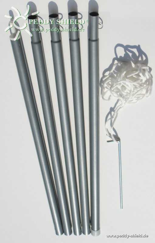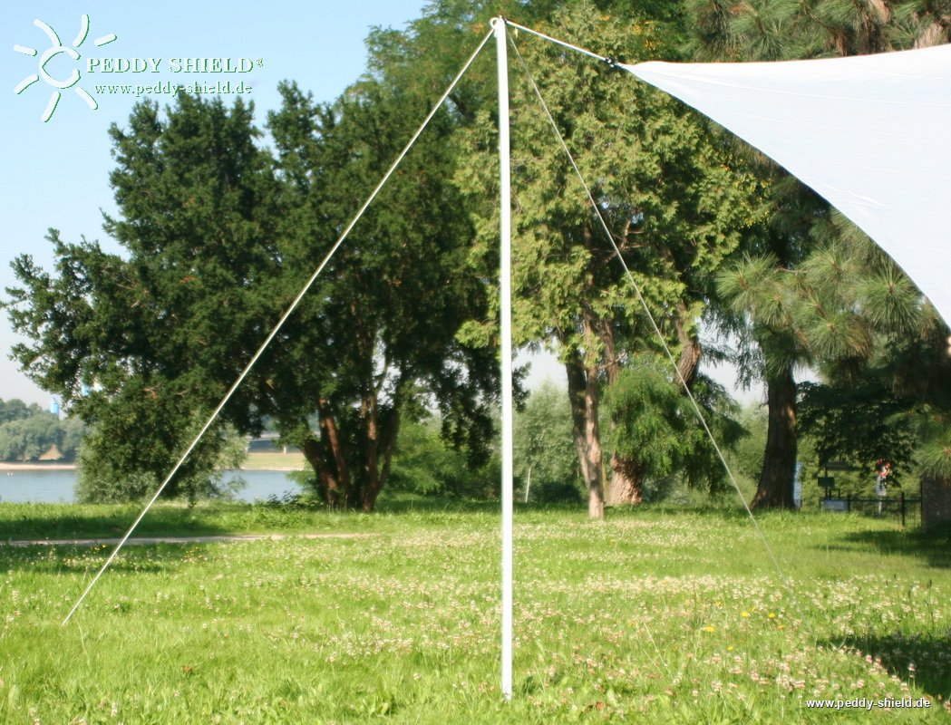 finden Sie hier verschiedene Montagemasten (für dieses Vierecksegel 3x 4 m der Mittelschwere Montagestab oder der elegante Aluminium-Telskomast mit dem passenden Schraub-Erdanker (siehe auch Fotogalerie).